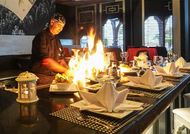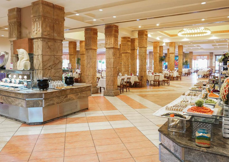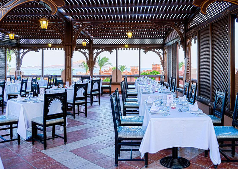 6 ristoranti, di cui uno principale a buffet e, a pagamento, 5 ristoranti à la carte di cui uno orientale Diwania e uno giapponese Teppanyaki nella sezione Life, uno francese, uno italiano e uno di pesce nella sezione Club. 10 bar di cui un lobby bar in ciascun hotel, uno nella piscina principale di ogni hotel e 2 in spiaggia.