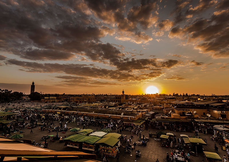Nel pomeriggio visita ai souk e alla celebre piazza Jemaa El Fna (Patrimonio orale e immateriale UNESCO)