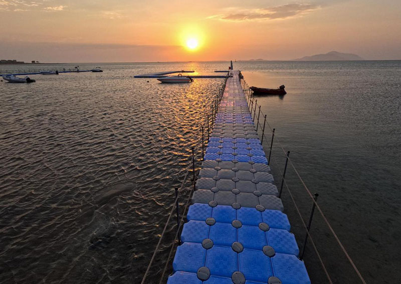La spiaggia specifica dell’hotel si trova all’interno di una raccolta e riparata baia con un piccolo pontile galleggiante che già da fuori regala un primo colpo d’occhio sulla ricca fauna marina, oltre che un facile accesso alle sue limpide e calde acque, ideali per rigeneranti bagni durante qualsiasi stagione. Lungo la spiaggia, camminando qualche minuto, si trovano diverse piscine naturali con fondale sabbioso fino a riva dove entrare in acqua e fare il bagno anche senza l’uso delle apposite scarpette.