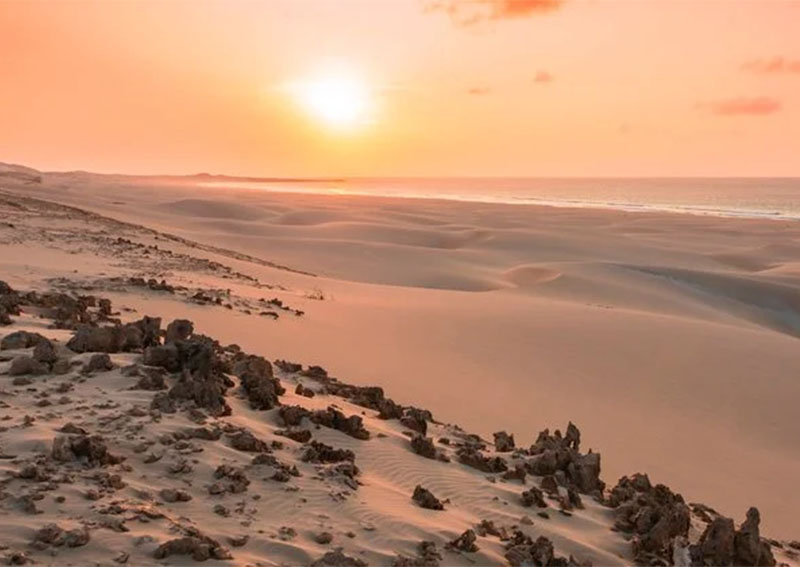 Boa Vista è la terza isola di Capo Verde, a due passi dall’Africa. Qui sorge il Praia de Chaves, un magnifico hotel a 5 stelle in cui potrai lasciarti conquistare dalla felicità e dal benessere di questo luogo incantevole. Ti trovi in un arcipelago composto da dieci isole che si dividono in due gruppi: le isole Sopravento e quelle Sottovento, dette anche le “isole della felicità”. Qui l’estate non finisce mai e per tutto l’anno il sole inonda della sua luce le lunghe spiagge sabbiose su cui si infrangono le onde dell’oceano.