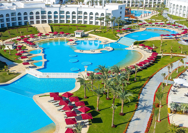 L’hotel gode di una posizione privilegiata con vista sull’Isola di Tiran e si affaccia direttamente sul mare, con una piattaforma corallina che si estende fino alla riva. L’accesso alla barriera corallina è garantito tramite un molo privato. Il Rixos Radamis Beach è ideale per chi desidera una vacanza lussuosa all’insegna del relax, senza rinunciare al divertimento, grazie alla vasta gamma di attività sportive e di intrattenimento.