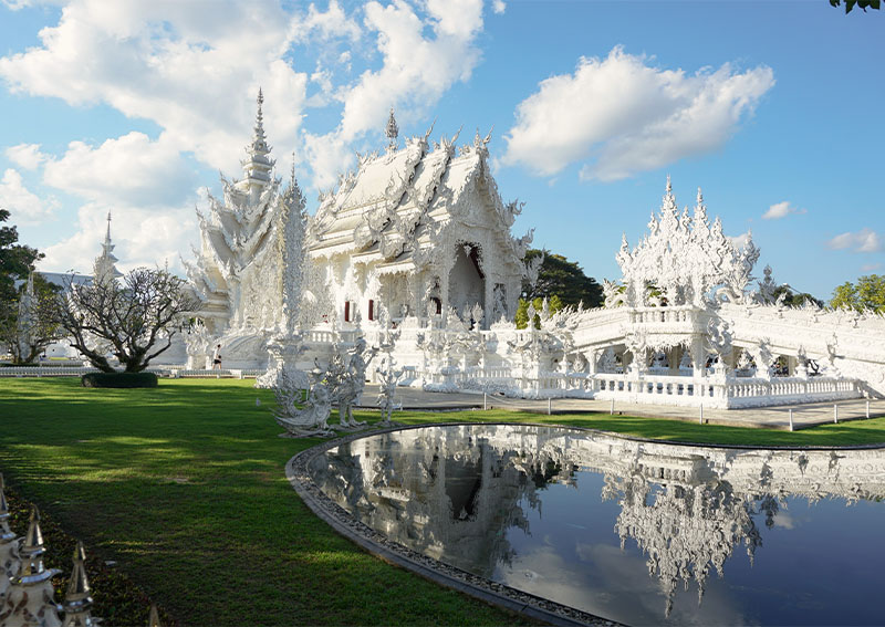 Prima colazione. In mattinata visita di due bellissimi templi costruiti recentemente: il Wat Rong Seur, meglio noto come il Tempio Blu, ed il più celebre Wat Rong Khun, noto come il Tempio Bianco. Partenza per Chang Mai e pranzo. Nel pomeriggio, visita del Chedi Luang e Phra Sing. Verso il tramonto, salita al Wat Prathat Doi Suthep per godere dell’atmosfera che aleggia sul tempio e con possibilità di ascoltare i canti serali dei monaci buddhisti. Cena e pernottamento.
