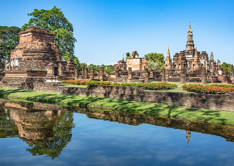 Prima colazione. In mattinata visita del Parco archeologico di Sukhothai, prima capitale del regno del Siam nel XIII secolo e oggi World Heritage dell’UNESCO: soste ad alcuni templi quali il Wat Srisawai, Wat Maha Dhat, Wat Sra Sri. Pranzo in ristorante tipico. Partenza per la visita del parco archeologico di Kamphaengphet, antica città che occupava una posizione strategica a difesa della valle del Menam, conobbe il suo momento di massimo splendore sotto il regno di Li Thai “il Pio” che, verso la metà del XIV secolo la arricchì di stupendi monumenti dove li stile di Sukhothai si apriva alle influenze birmane anticipando così la nascita del raffinato stile di Lanna. All’interno del complesso, visiteremo il Wat Phra Si Iriyabot, caratteristico per la sua architettura stile tipico Sukhothai e le quattro statue del Buddha in differenti posizioni; il Wat Chang Rob, un grande tempio situato sulla collina e circondato da statue di elefanti, le cui pareti interne sono adornate con altorilievi raffiguranti danzatrici e demoni della tradizione buddhista. Arrivo ad Ayutthaya e sistemazione in hotel. Cena e pernottamento.